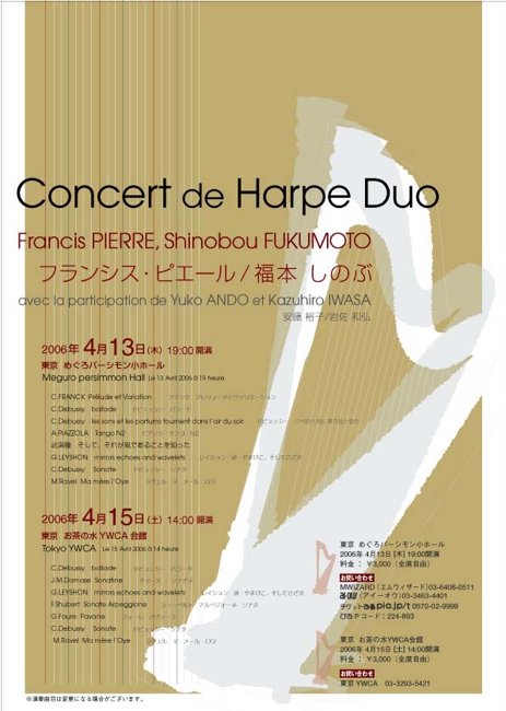 フランシス・ピエール(ハープ)松川恭子(ハープ)- 04月15日(土) デュオ・コンサート with guest