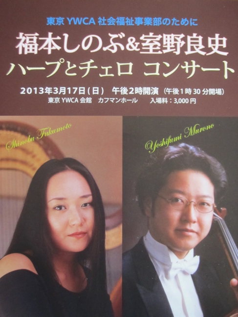 - お茶の水YWCA カフマンホール 14:00 主催 : お茶の水YWCA室野良史(チェロ)