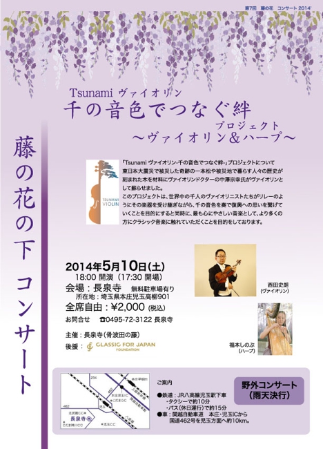 - 5月10日(土) 藤の花の下コンサート ~千の音色でつなぐ絆~
