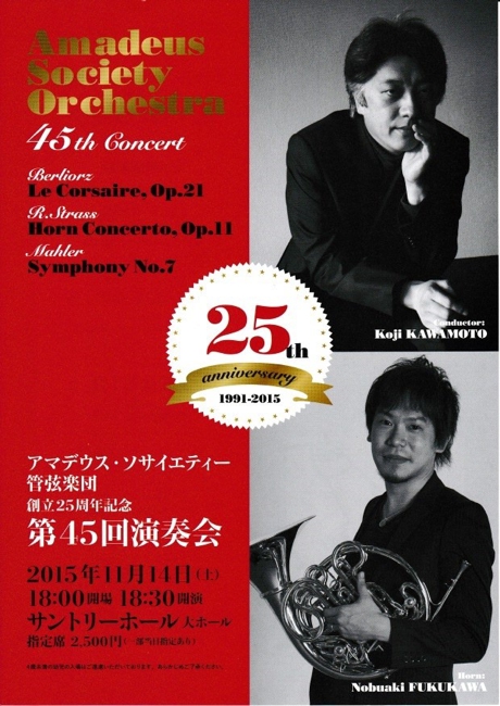 [指揮] 川本貢司[ホルン] 福川伸陽ベルリオーズ / 序曲《海賊》R.シュトラウス / ホルン協奏曲第1番マーラー / 交響曲第7番 - 8月25日(火) 青山ロータリークラブclosed