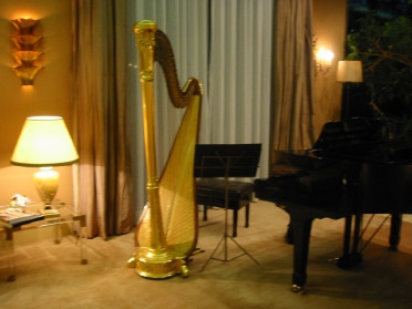 今回もその口でしたが「帝国ホテルでの祝賀会です」と伝えたら、ゴージャスはハープが届きびっくり。