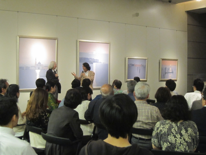 これまで、展覧会会場に座ってる姿しか見せてなかったので、何だか不思議な感じでしたが、「お〜こんな事やってるんだ〜! fantastico!」とお言葉を頂きました。