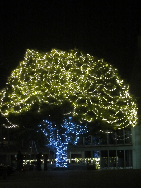奏楽堂前の大きな木にはクリスマス・イルミネーションが。もうすぐ12月ですね♪