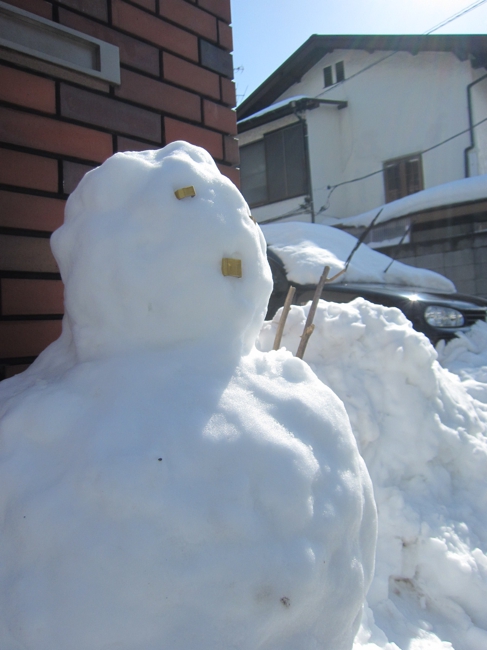 帰宅前にはご近所さんの雪だるまくんで癒され。
