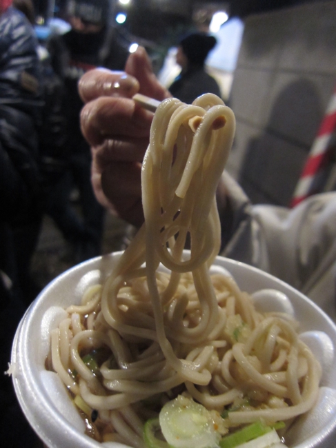 そして配られた年越しそば。冷えきった身体にしみる温かさ。