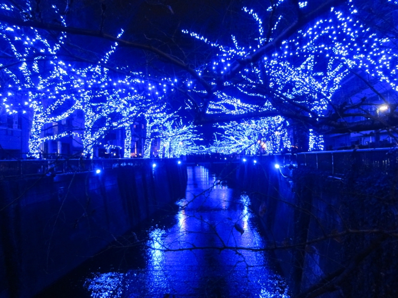 そんな今年は、人ごみは嫌いだが、見ないともったいないかな〜と、目黒川の "青の洞窟" に。